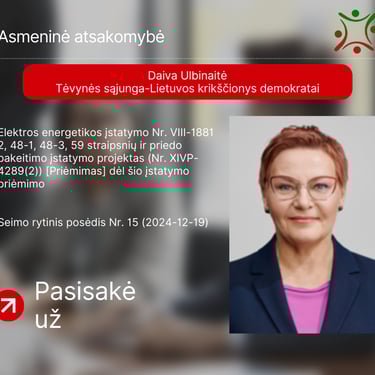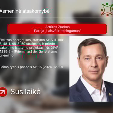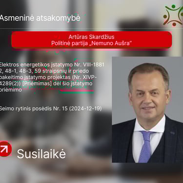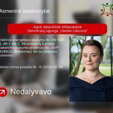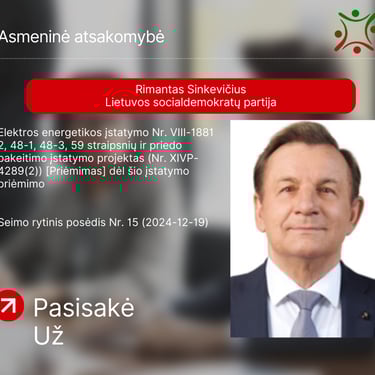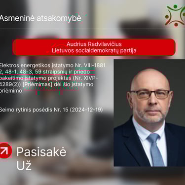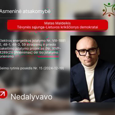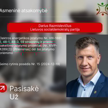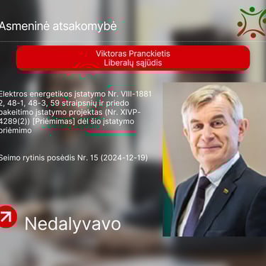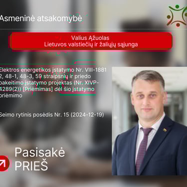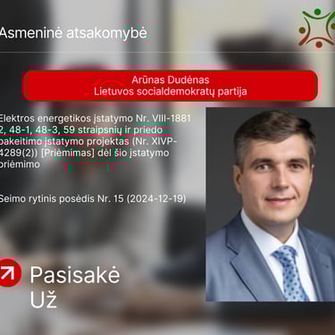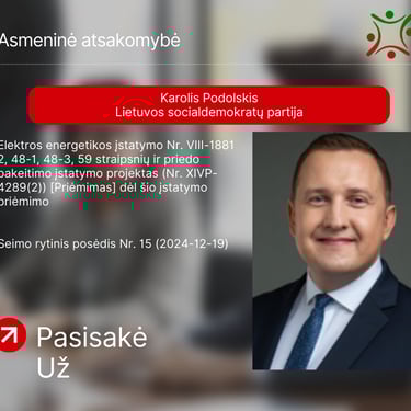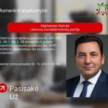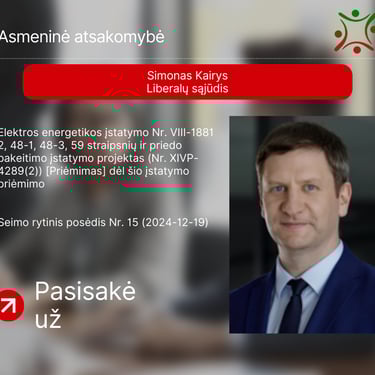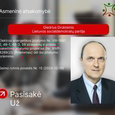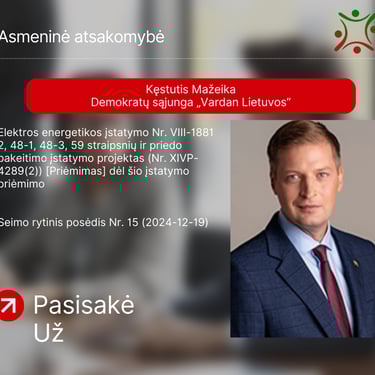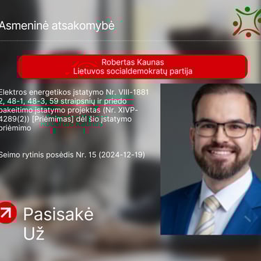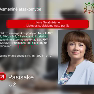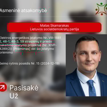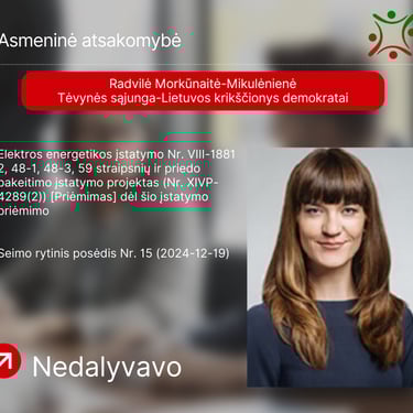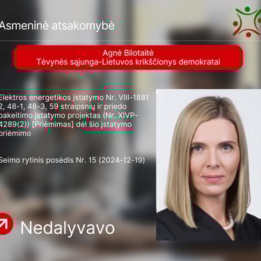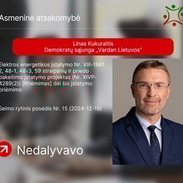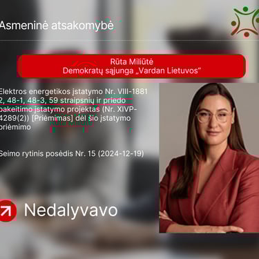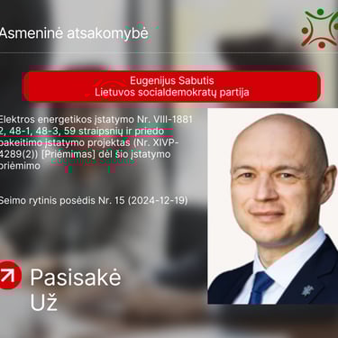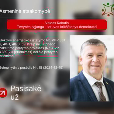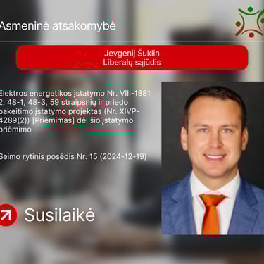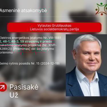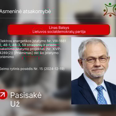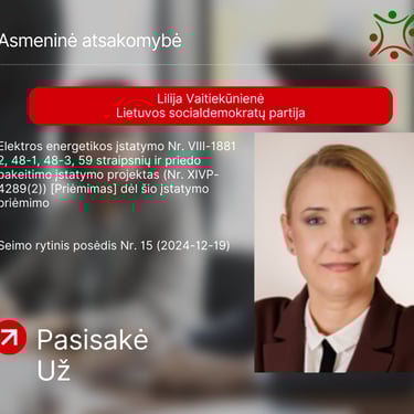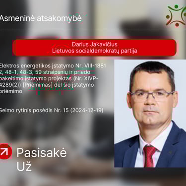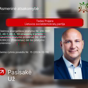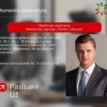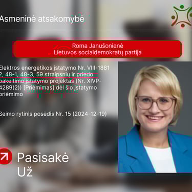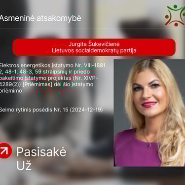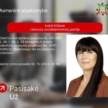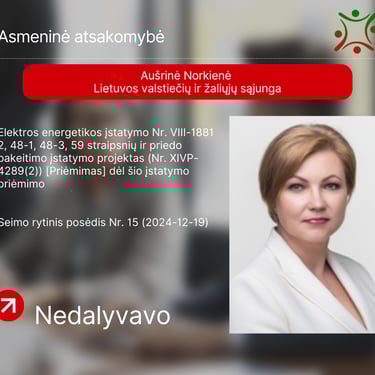 Ar žinojote, kad nauji elektros įstatymo pakeitimai gali padidinti jūsų sąskaitas ir atverti kelią finansinėms manipuliacijoms? Sužinokite, kaip balsavo jūsų atstovas Seime ir kodėl šie sprendimai gali būti lemtingi kiekvienam iš mūsų!