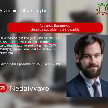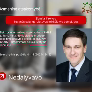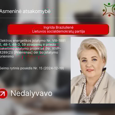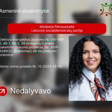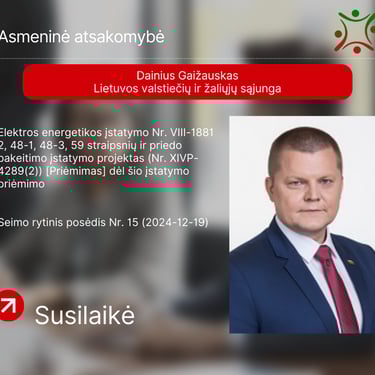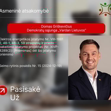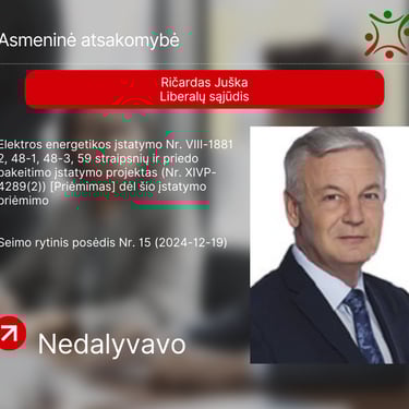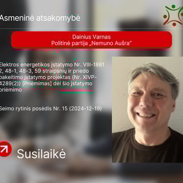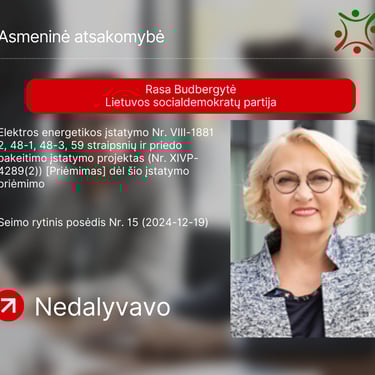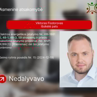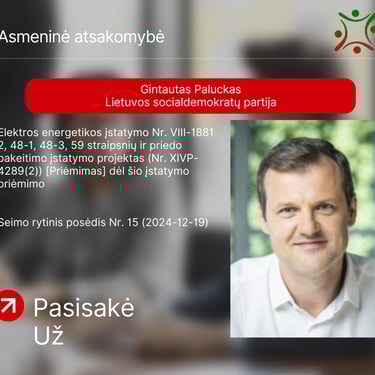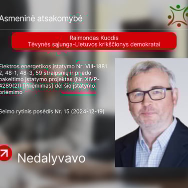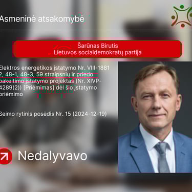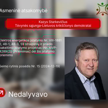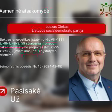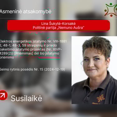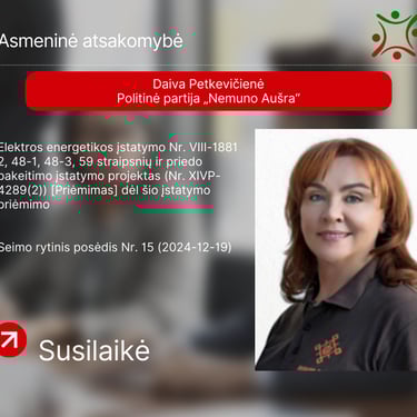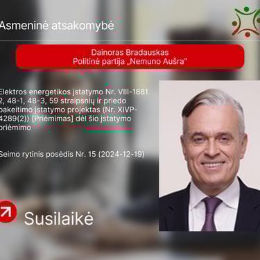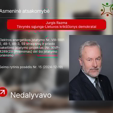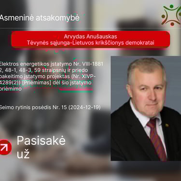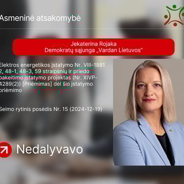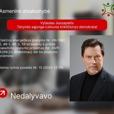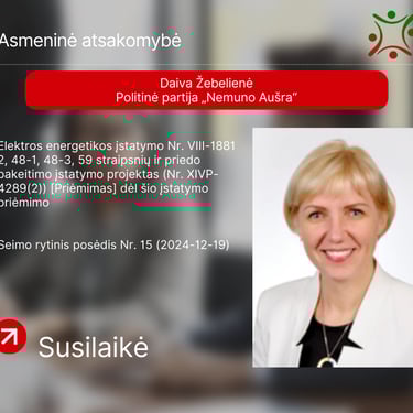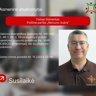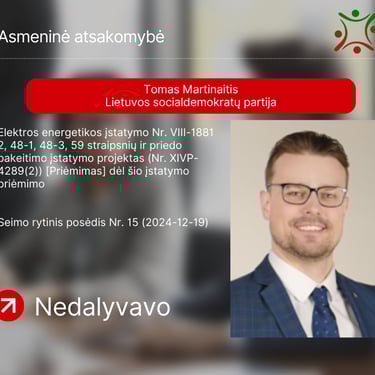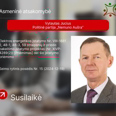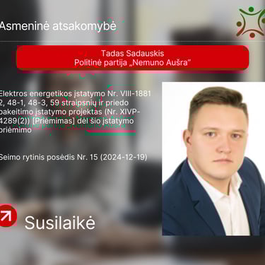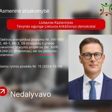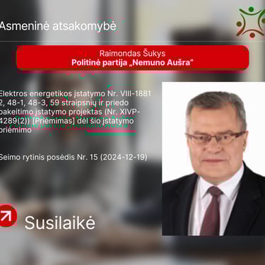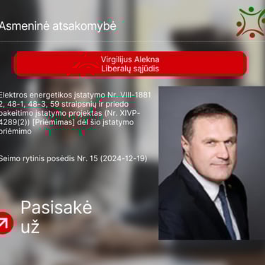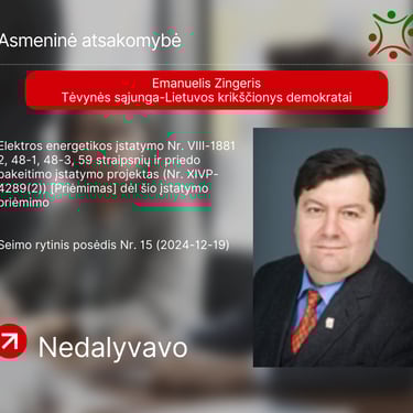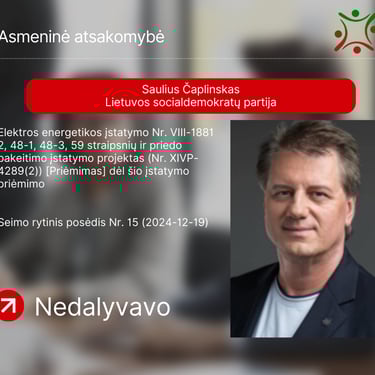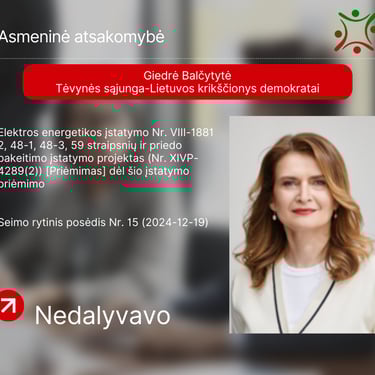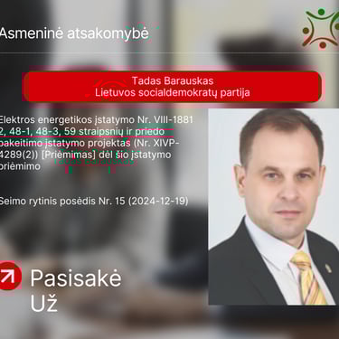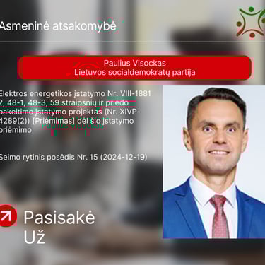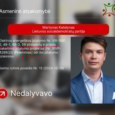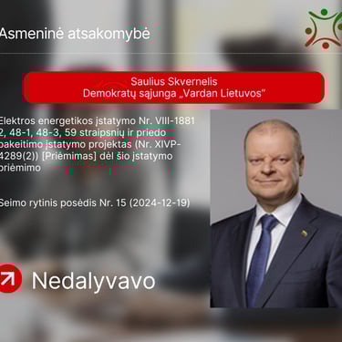 Ar žinojote, kad nauji elektros įstatymo pakeitimai gali padidinti jūsų sąskaitas ir atverti kelią finansinėms manipuliacijoms? Sužinokite, kaip balsavo jūsų atstovas Seime ir kodėl šie sprendimai gali būti lemtingi kiekvienam iš mūsų!