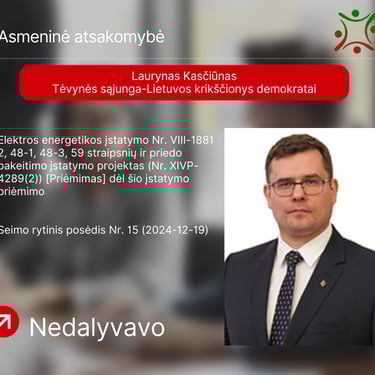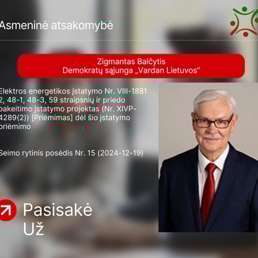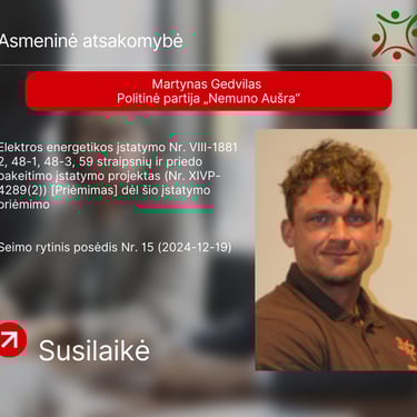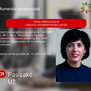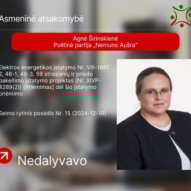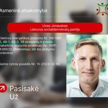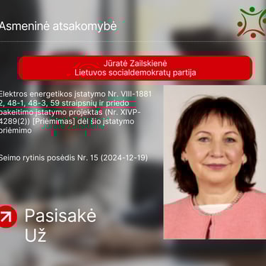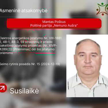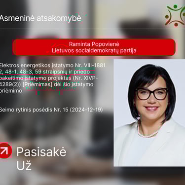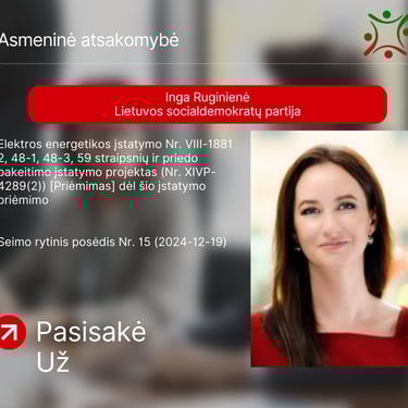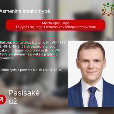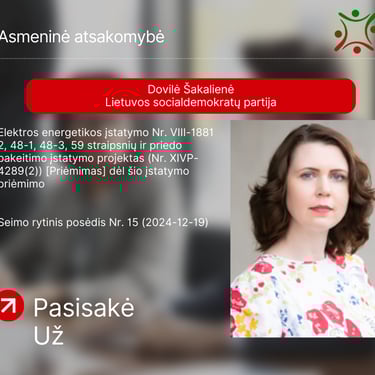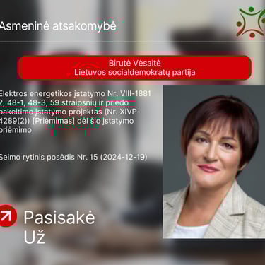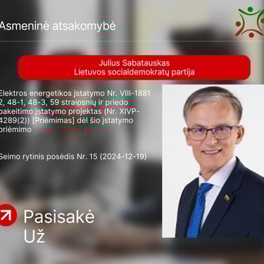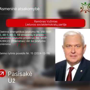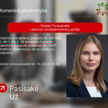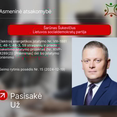 Kviečiame aktyviai dalintis šia informacija ir viešai diskutuoti apie savo rinktų atstovų pozicijas. Tik atvira visuomenė ir aiški atsakomybė už priimtus sprendimus gali užtikrinti, kad valdžia veiks mūsų, o ne siaurų interesų naudai. Jūsų balsas ir klausimai yra raktas į pokyčius!